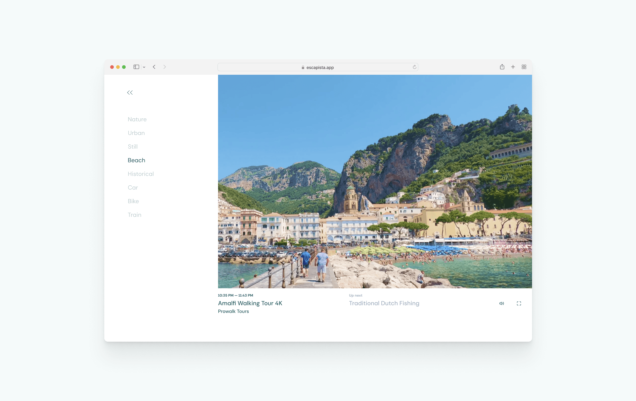 For a long time I’ve been in love with the concept of Slow TV, and from the beginning of the COVID pandemic I started collecting some YouTube channels I was shocked with how much amazing stuff was out there. I started sketching ideas for a webapp that would help promote all this amazing content, something with a frictionless experience that would attempt to fix once and for all the choice paralysis present in so many video streaming platforms these days.
