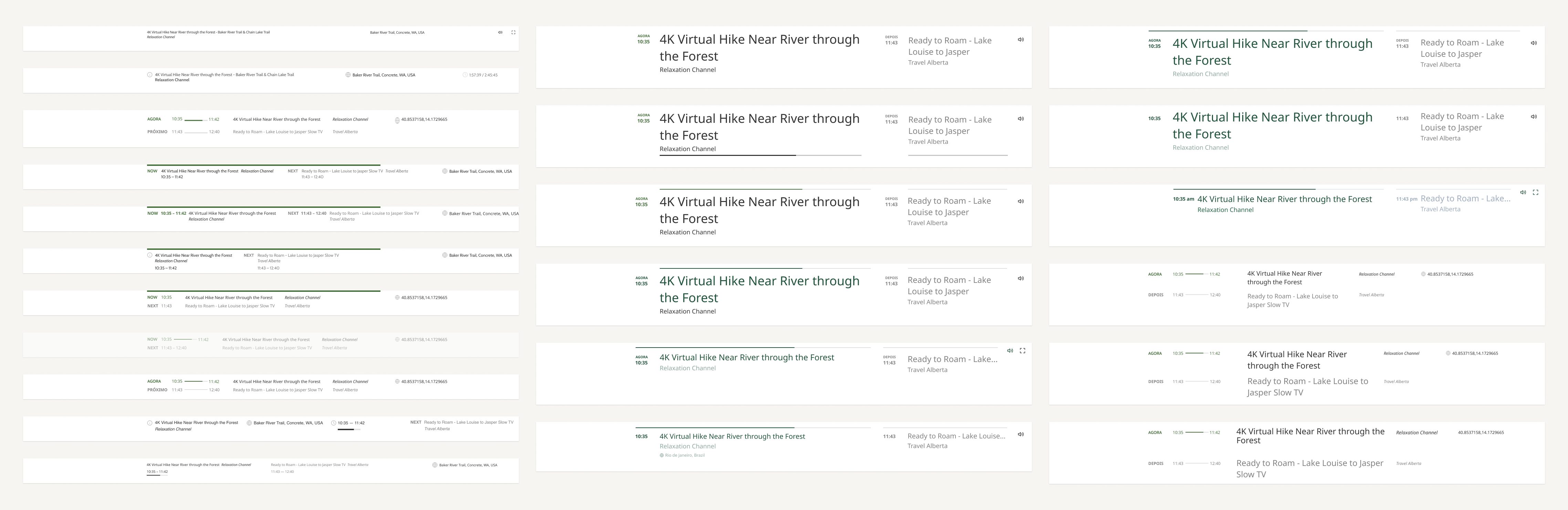 I’ve explored many alternatives, searching for something that made sense to our vision of a UI that “play to the same affective experience of watching Slow TV itself”, as one survey respondent said. To guide my explorations and help us make decisions, I devised 3 design principles for the product: