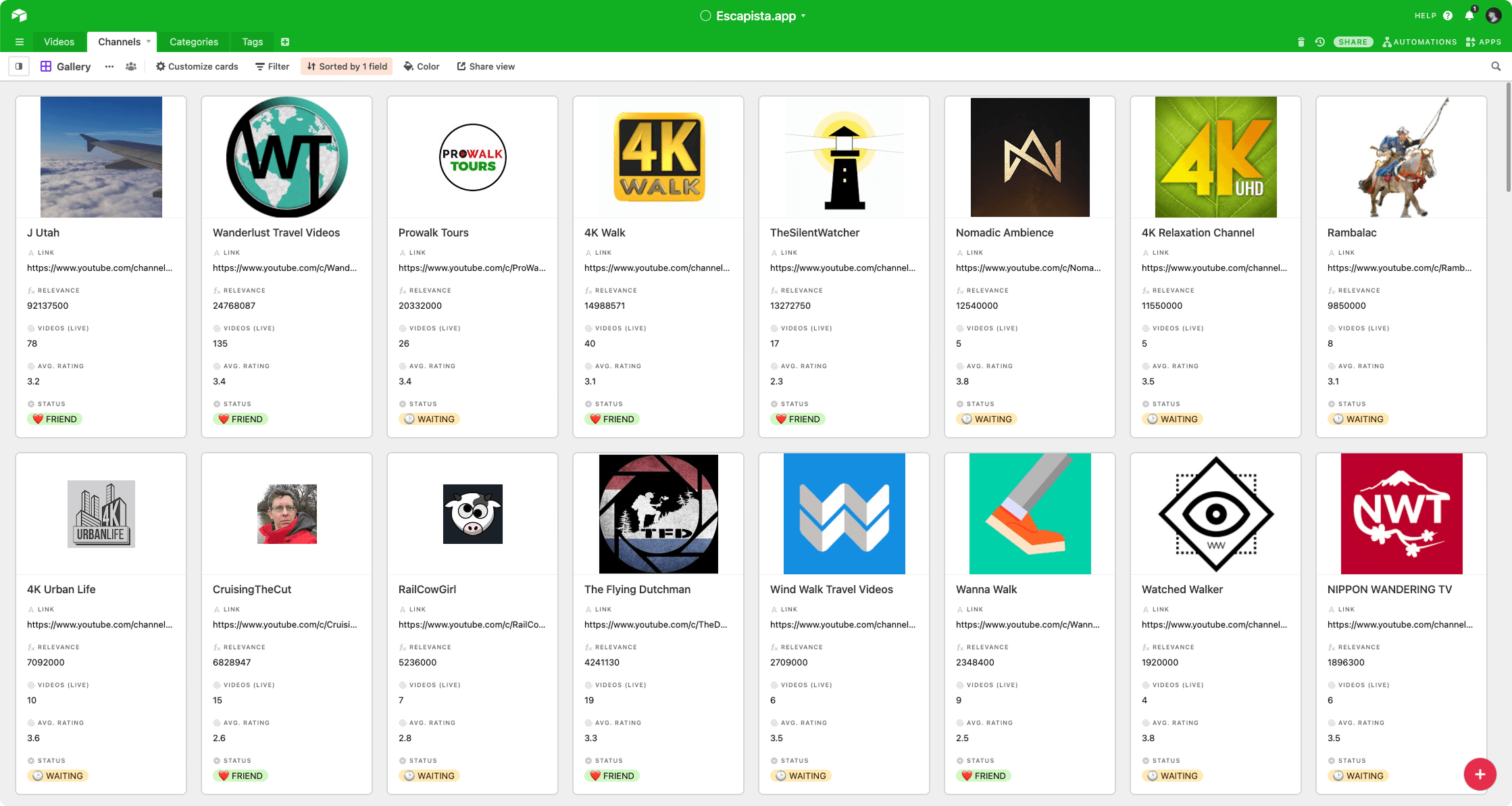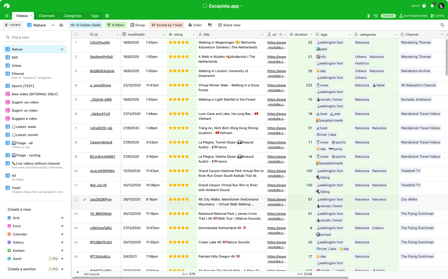 A lot of my focus on the development side was on creating a Content Management System (CMS) for storing, rating and categorizing the videos. This was crucial since the experience was so simple, the curation should be of the highest quality, and we’d invest many and many hours on searching and categorizing the best videos we could find. I chose to use Airtable for the power it provides, enabling to create relationships between data just like a real database, while providing an extremely user-friendly interface.