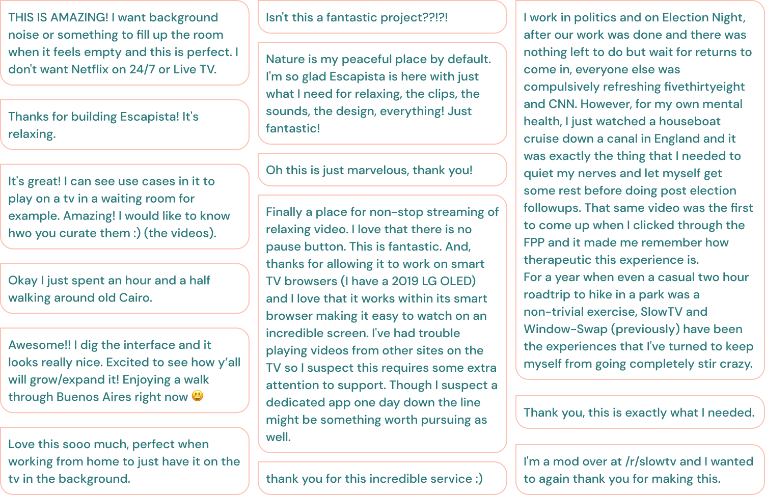 This project was co-created with the Reddit Slow TV community, where we understood the whys and hows of those users. We posted a survey asking people to help me build this app.