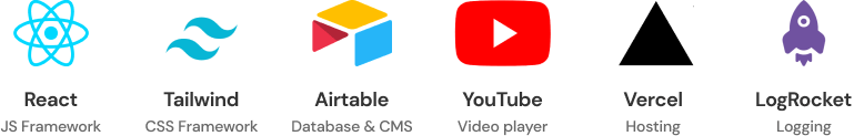 I started creating an integration with Airtable, which would serve as both our Database and CMS (content management system). By using a YouTube Embedded Player under the hood I could simplify any complexity about storing and streaming videos, but also all views and ad revenue would to the original video creators. For layout and styling I used Tailwind CSS, a framework with an innovative approach that I’ve been meaning to try for a while.