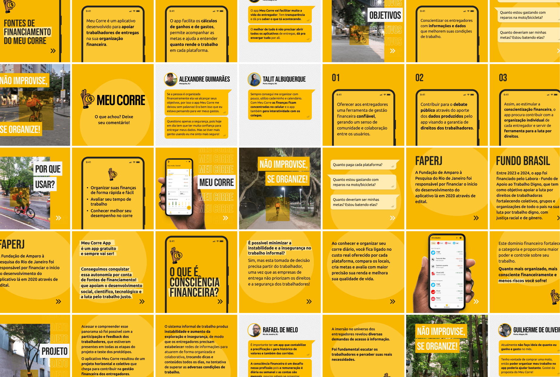 "My Gig" is an app designed to support delivery workers in becoming financially aware during their often precarious daily work routine. By fostering financial awareness, the app not only supports individual organization but also serves as a powerful advocacy tool by generating unprecedented data to inform the fight for workers' rights in Brazil.