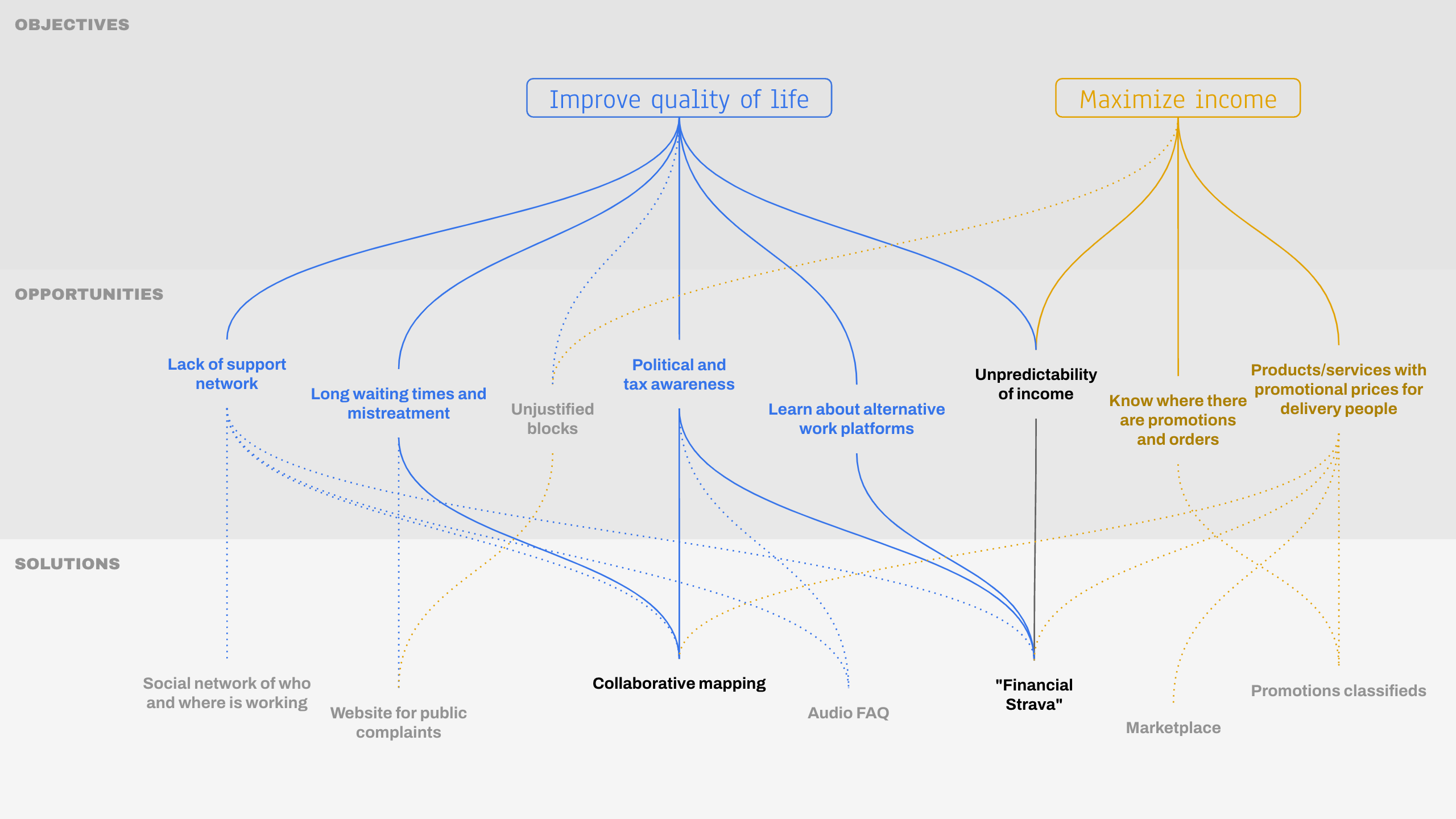 • Rushed routines: their lives are extremely rushed, from having to take care of their families, long commutes to distant parts of the city where there’s more activity with delivery apps. At the same time, they often have to wait long times for restaurants to prepare the food and for the clients to pick it up. This leaves them without time to study or search for alternatives.